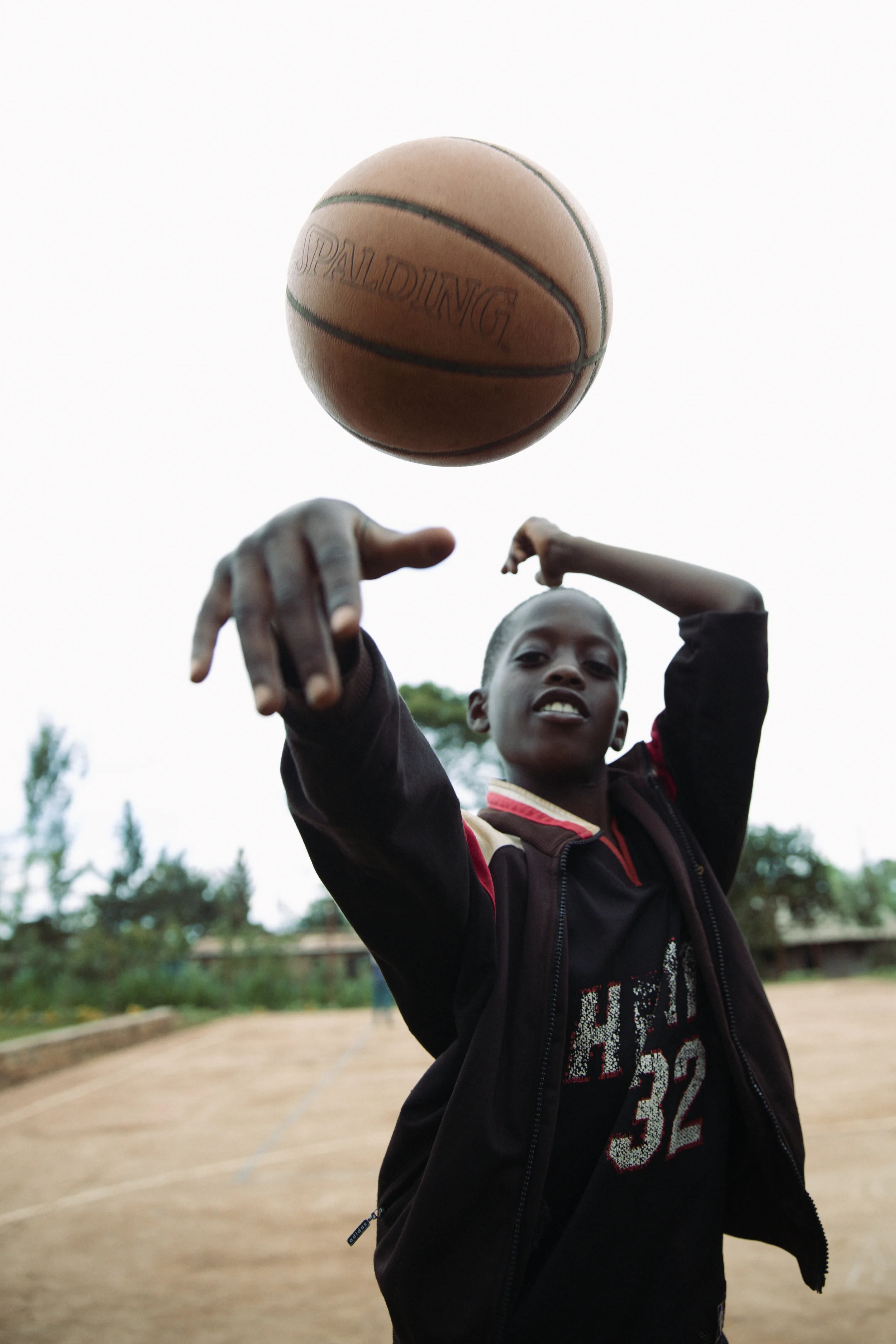 Djihad Bizimana, 14, on a basketball court in Rwinkwavu, Rwanda.