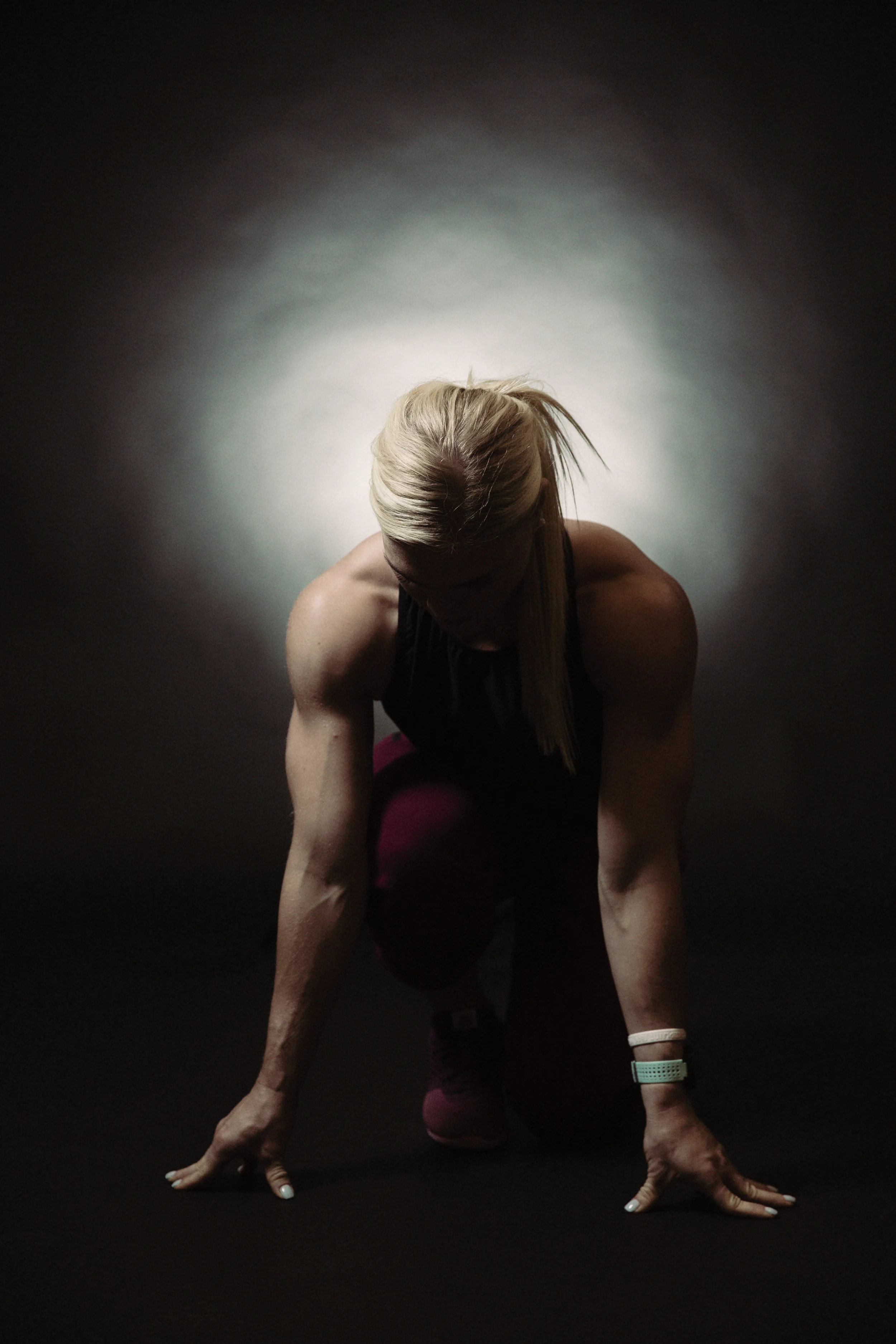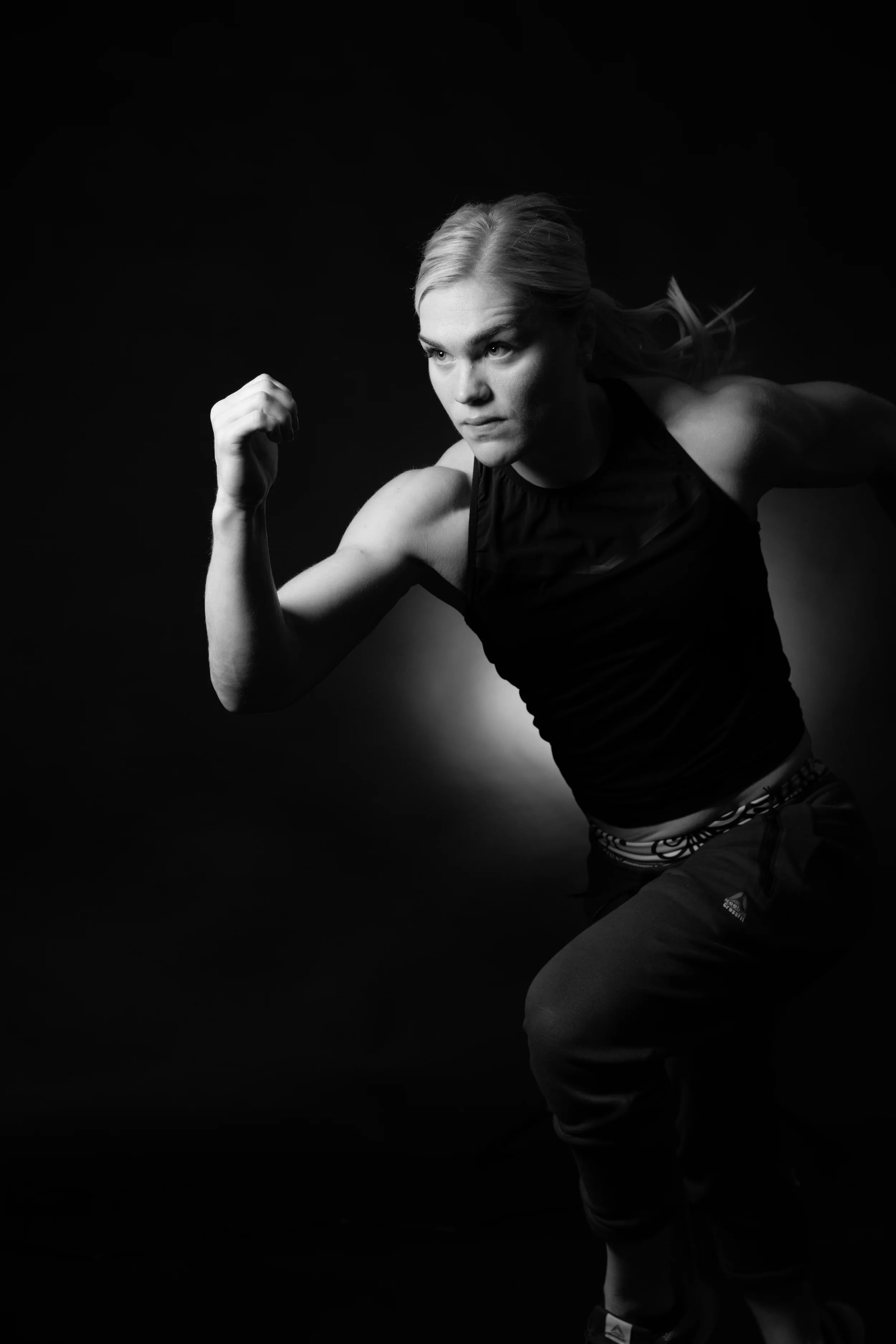 I had the pleasure of photographing the "Fittest Woman on Earth," 2015 Crossfit Champion Katrin Davidsdottir for Gamplan-a, an Adidas Group blog. I traveled over to the Reebok headquarters with my assistant Eric, set up a portrait studio in one of their conference rooms and waited. The task was to take 2 portraits of Katrin to coincide with an article written by one of the editors at GamePlan A. 1 photo would be a dramatic head shot and the other a movement according to a specific phrase, in this case "Show us what it looks like to push past your limits every day." Katrin was a delight. She arrived with a film crew from Crossfit headquarters and was ready to roll. We discussed what needed to be captured but also how she wanted to look. She was very adamant about nothing too serious looking which is a testament to her personality and life. Katrin, works insanely hard but as you can see in all her social posting and as I experience during the session, she's always having fun. We took a couple dozen head shots and decided on the final very quickly. I really felt the final portrait showcases her confidence, personality, focus and strength all in one. Finally we gave her the phrase for the second photo and she immediately thought of blasting out of the blocks in a sprint and catching the motion at it's peak. This took a few tries but we nailed it. She was resilient and extremely receptive of any direction. In the end the client was very happy, the article is doing fantastic with well over 5k shares and Katrin is about to start her quest for a repeat at the games this week.